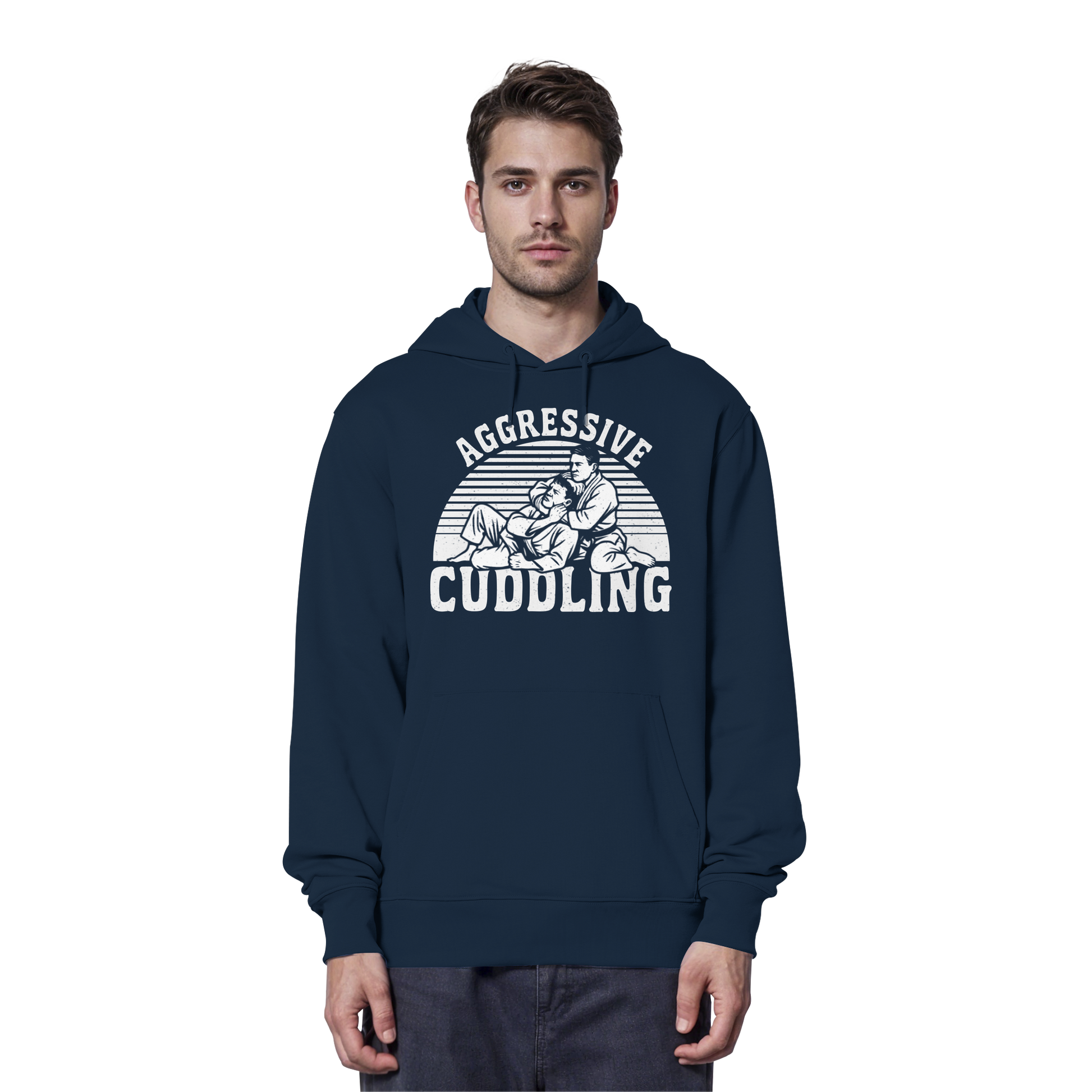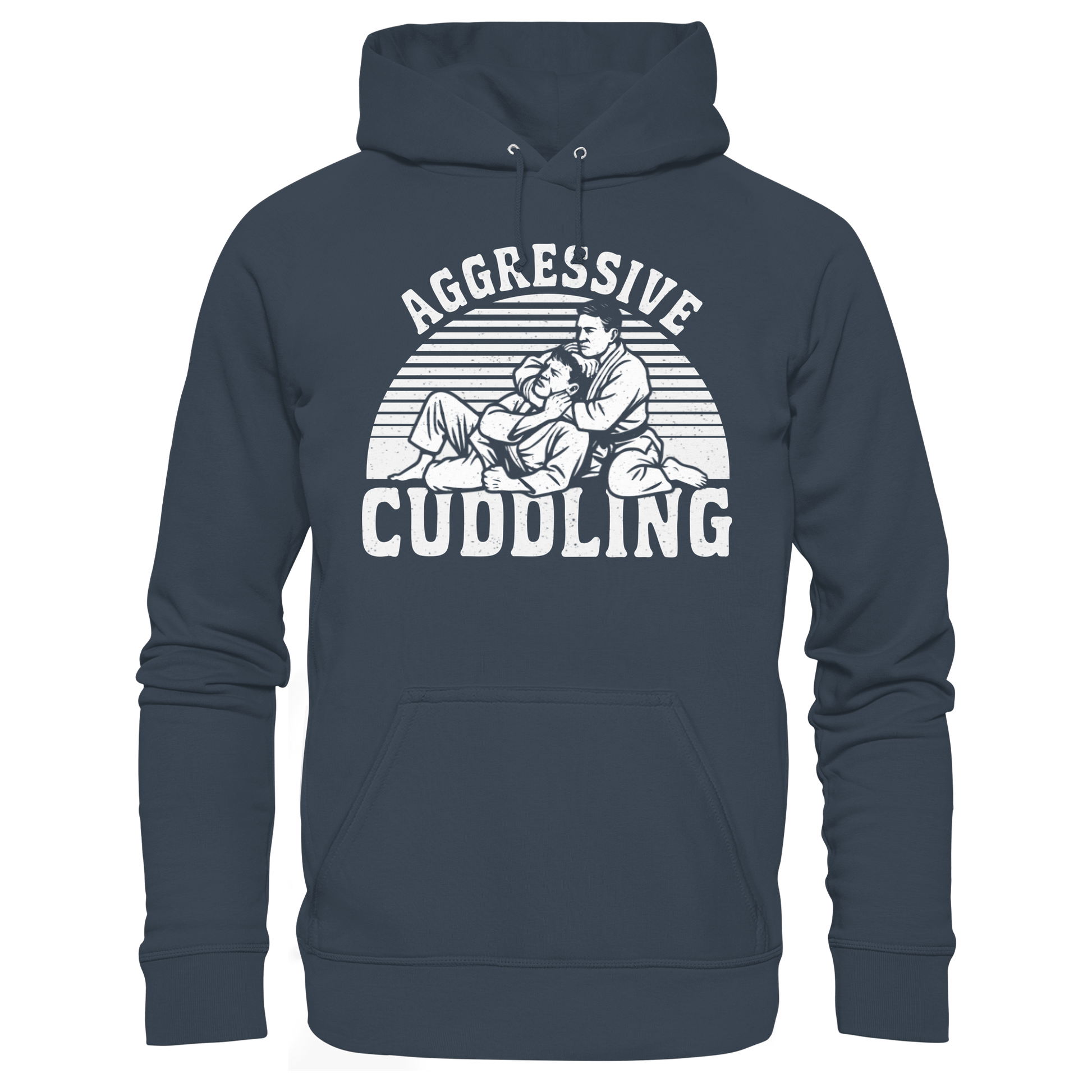 AGGRESSIVE CUDDLING ist BJJ-Humor auf den Punkt gebracht. Was für Außenstehende nach Umarmen aussieht, ist in Wahrheit Kontrolle, Druck und Technik. Dieses Design spielt bewusst mit dem Kontrast zwischen Wahrnehmung und Realität – freundlich im Namen, gnadenlos in der Ausführung.